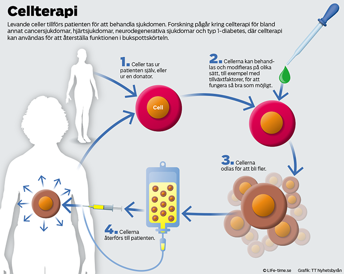 – Det är därför Karolinska har startat ett centrum för cellterapi. Det behövs en stödfunktion, någon man kan ringa till för att få hjälp med planering av behandling, forskningsprojekt, ansökningar till Läkemedelsverket och annat.