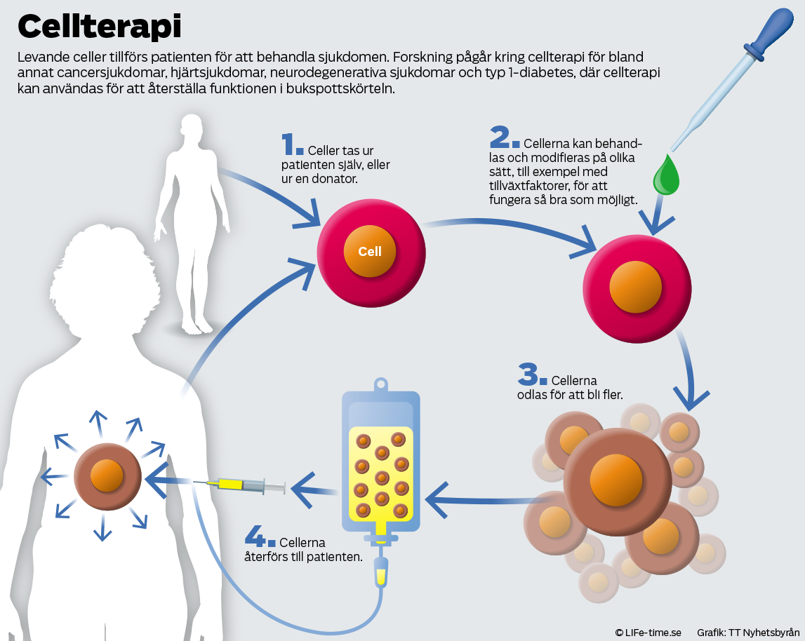 – Vi ser väldigt lovande resultat från kliniska studier kring flera sjukdomar. Det närmaste decenniet är cellterapi ready for prime time. Men sedan kommer behandlingarna fortsätta att förbättras under många år. Precis som att diabetesbehandlingar har gått igenom en mängd utvecklingssteg genom decennierna, så kommer cellterapier att göra det. Först har de en viss effekt, sedan kan vi förfina dem när vi lär vi oss mer. Men "genombrottet" i laboratoriet, det har vi egentligen redan haft.